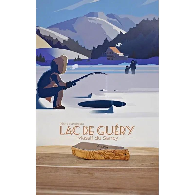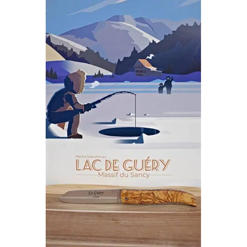Notre nouveau couteau, Le Guéry 1244 fait référence à cet endroit unique. Une lame large avec la pointe dans l’axe du couteau (pointe – pivot – angle haut du bout du manche) et une manche agréablement contourée donne une excellente prise en main et la forme idéale pour tout faire.