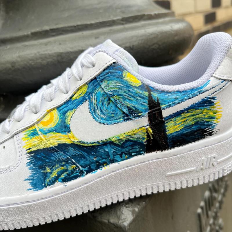 Chaussure NIKE Air Force One, custom Van Gogh "La Nuit étoilée"