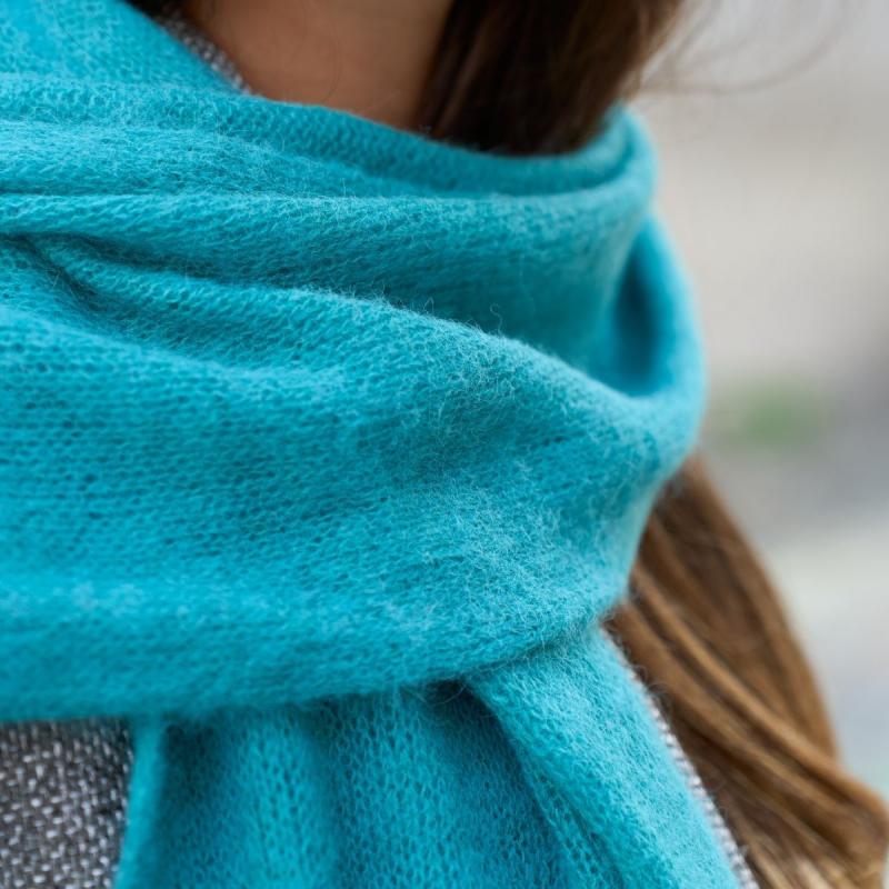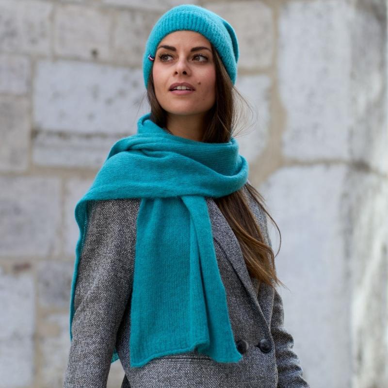 Enveloppez-vous dans la douceur de l’écharpe Jade, confectionnée à partir de fibres 100% naturelles. Son tricotage délicat allie la chaleur de l’alpaga à la finesse et la légèreté de la soie, offrant une sensation unique au toucher.