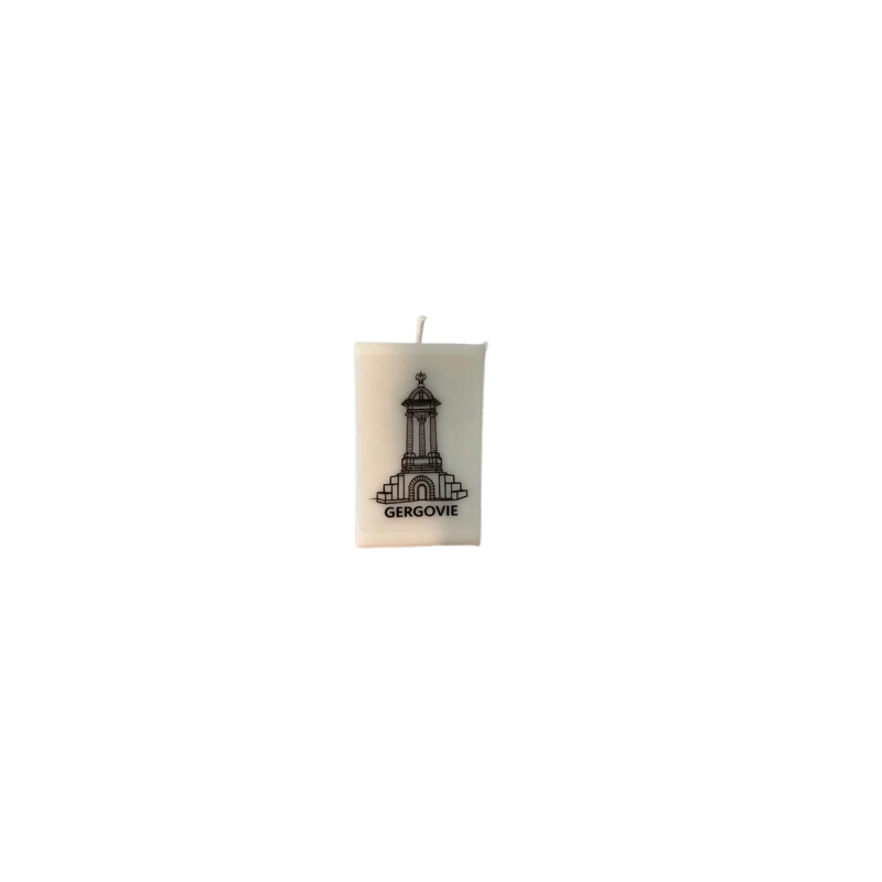Apportez une touche élégante et locale à votre décoration avec cette bougie pilier en forme carré en cire végétale, ornée d’une illustration fine de la Cathédrale de Clermont-Ferrand.