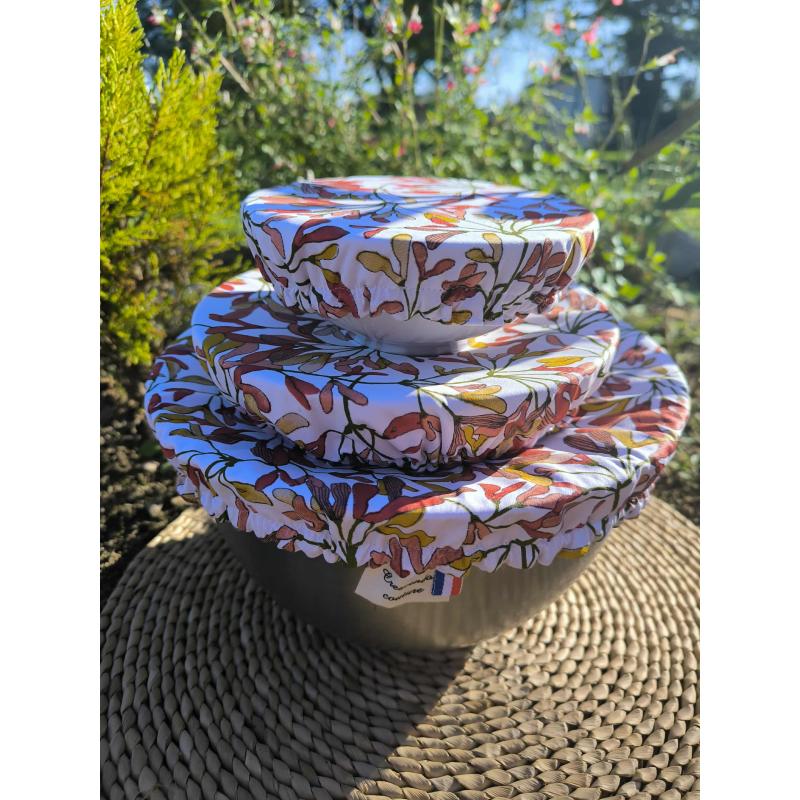 Couvre-bols réutilisable en coton enduit : rapide à poser, parfait au frigo, zéro film jetable.