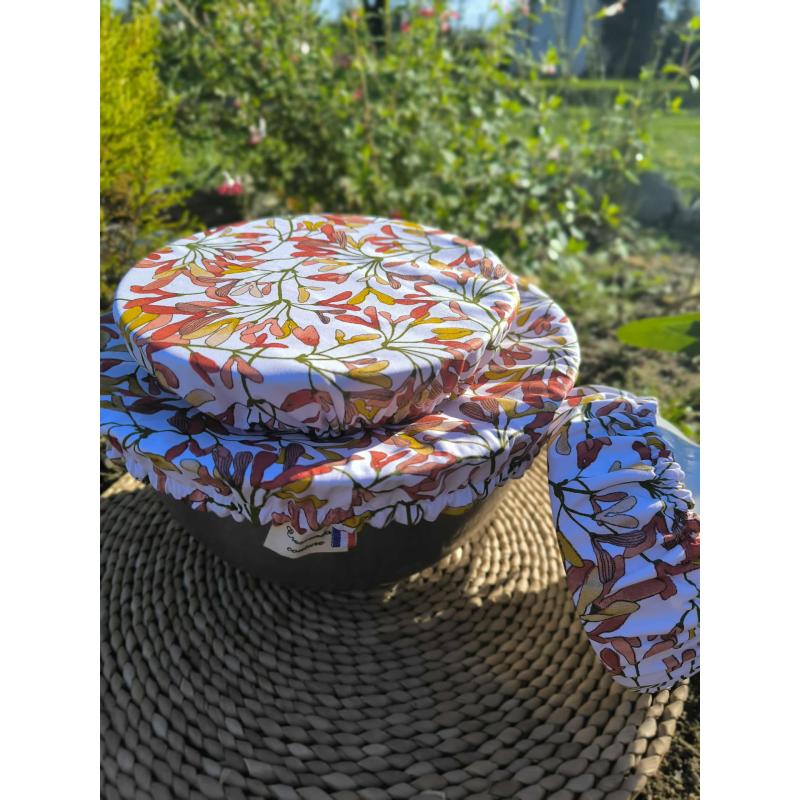Le tissu coton enduit déperlant se tend grâce à l’élastique pour couvrir bols, saladiers ou plats ronds. Parfaite pour protéger un reste, faire lever une pâte ou mettre un plat au réfrigérateur. Le motif samarès des érables apporte une touche déco à la cuisine.
