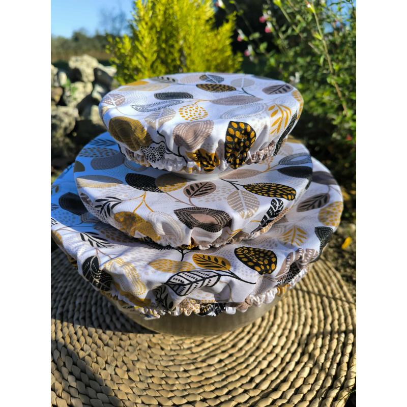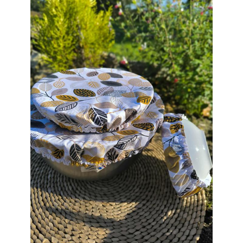 Couvre-bols réutilisable en coton enduit : rapide à poser, parfait au frigo, zéro film jetable.