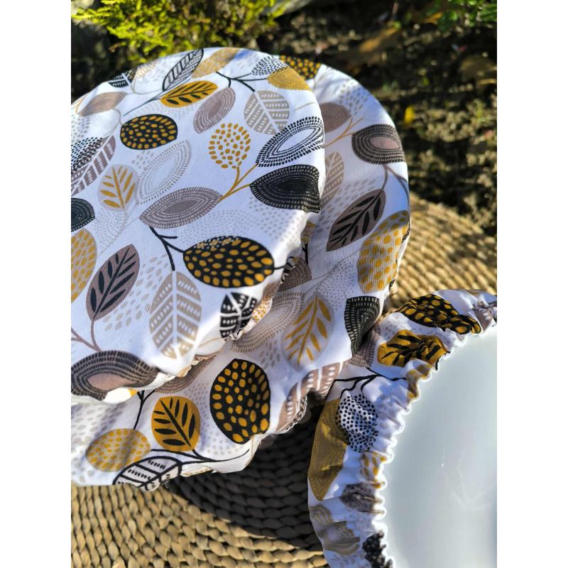 Le tissu coton enduit déperlant se tend grâce à l’élastique pour couvrir bols, saladiers ou plats ronds. Parfaite pour protéger un reste, faire lever une pâte ou mettre un plat au réfrigérateur. Le motif sous bois apporte une touche déco à la cuisine.