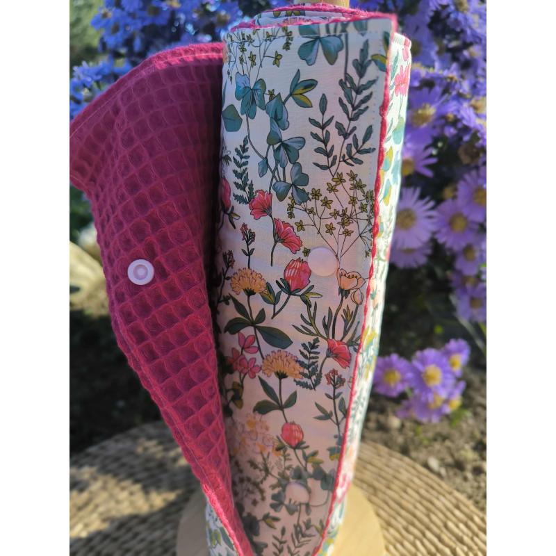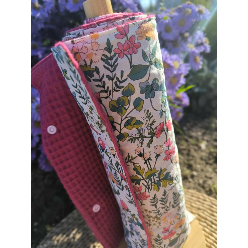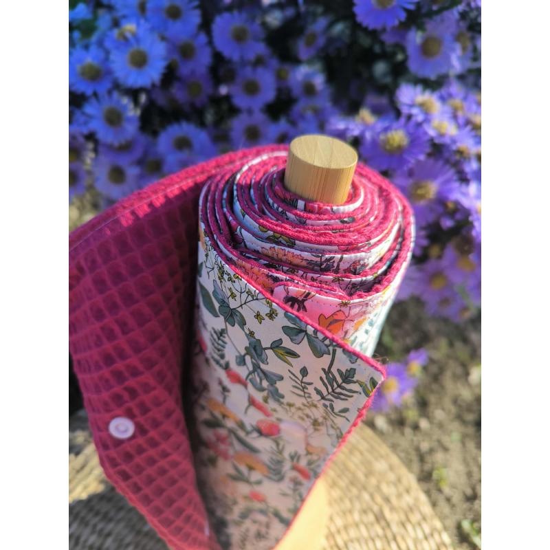 L’essuie-tout lavable Balade Bucolique allie praticité et style : face en coton imprimé fleurs champêtres, envers en nid d’abeille framboise ultra absorbant. Réutilisable et durable, il remplace le papier jetable tout en apportant fraîcheur et charme à votre cuisine.