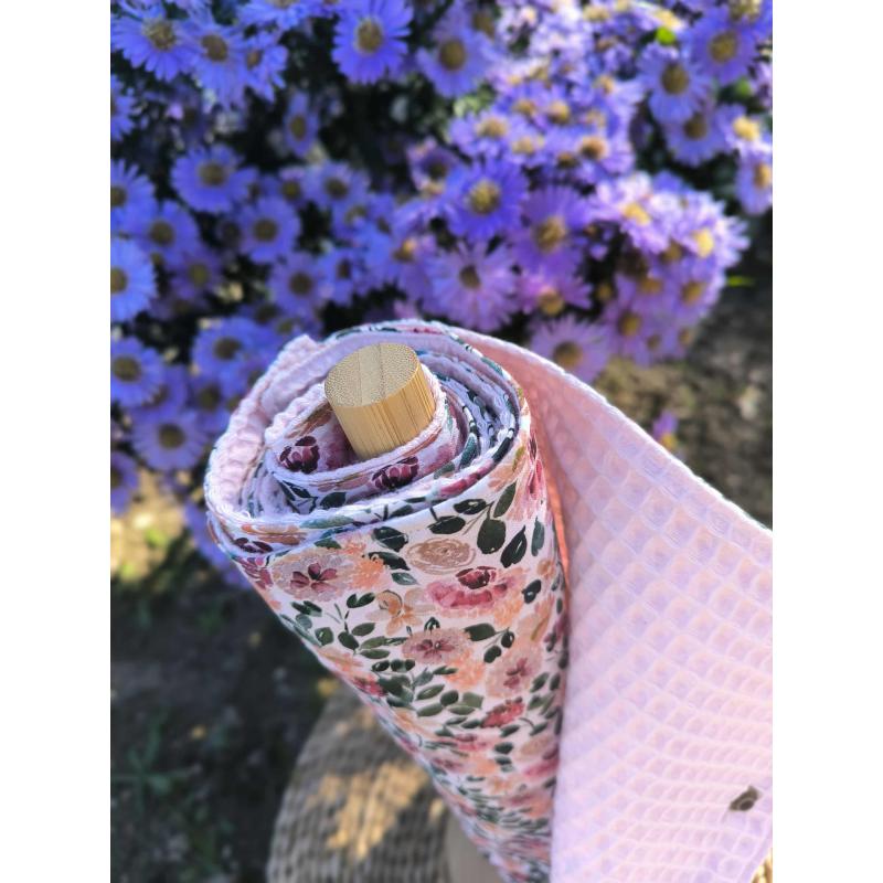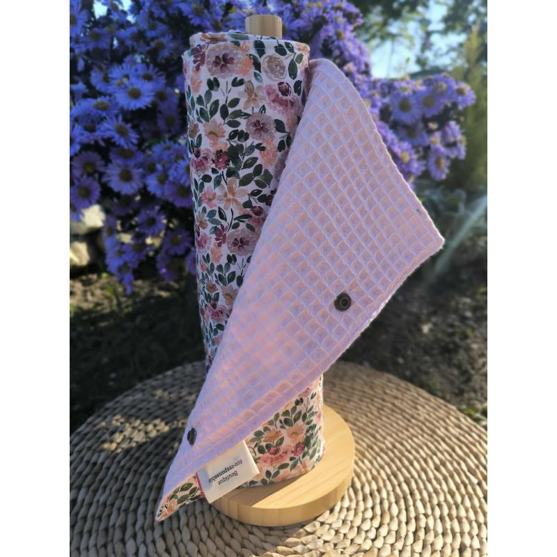 L’essuie-tout lavable Esmée allie praticité et style : face en coton imprimé fleurs champêtres, envers en nid rose pâle ultra absorbant. Réutilisable et durable, il remplace le papier jetable tout en apportant fraîcheur et charme à votre cuisine.