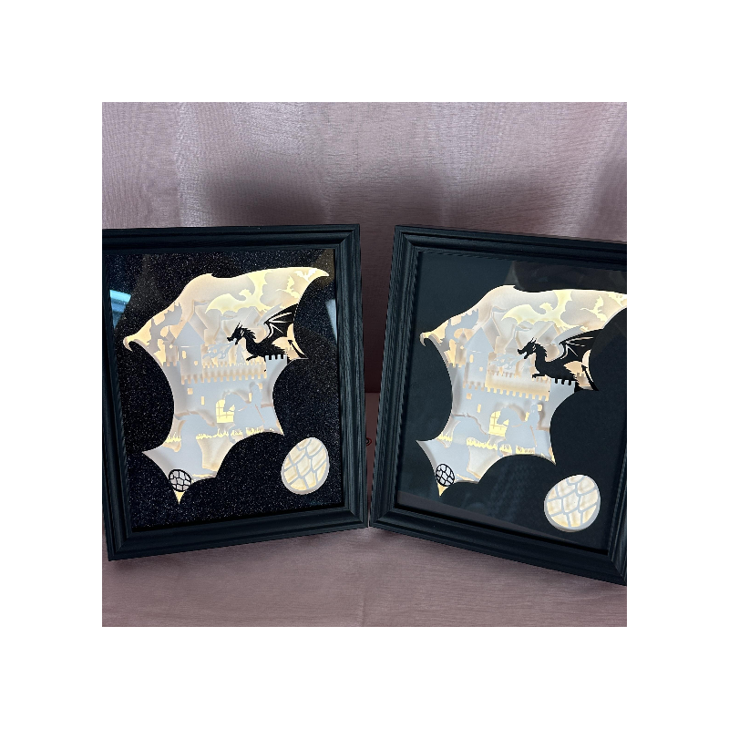 Le cadre lumineux Dragons, dans sa version pailletée ! Un papier noir pailleté vient apporter sa touche féérique et magnifier ce cadre envoûtant.