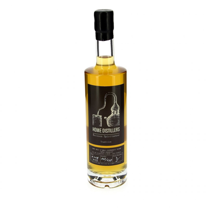 100% malt d’orge légèrement tourbé, chêne français et chêne oloroso, Whisky brassé et distillé à la Distillerie en Auvergne.