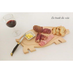 Planche forme "tête de vache Salers" en hévéa massif, lamellé collé, non traité.