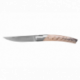 Il est disponible dans un large choix de manches corne tels que la pointe de corne, la croûte de buffle, l'ivoire de phacochère, le bois de cerf...